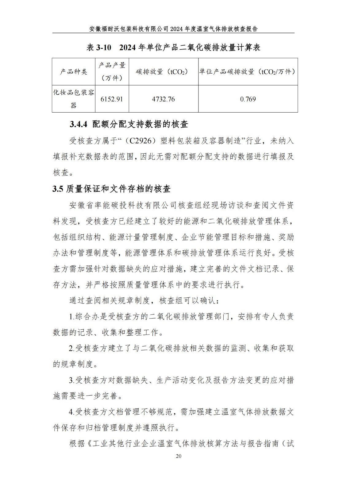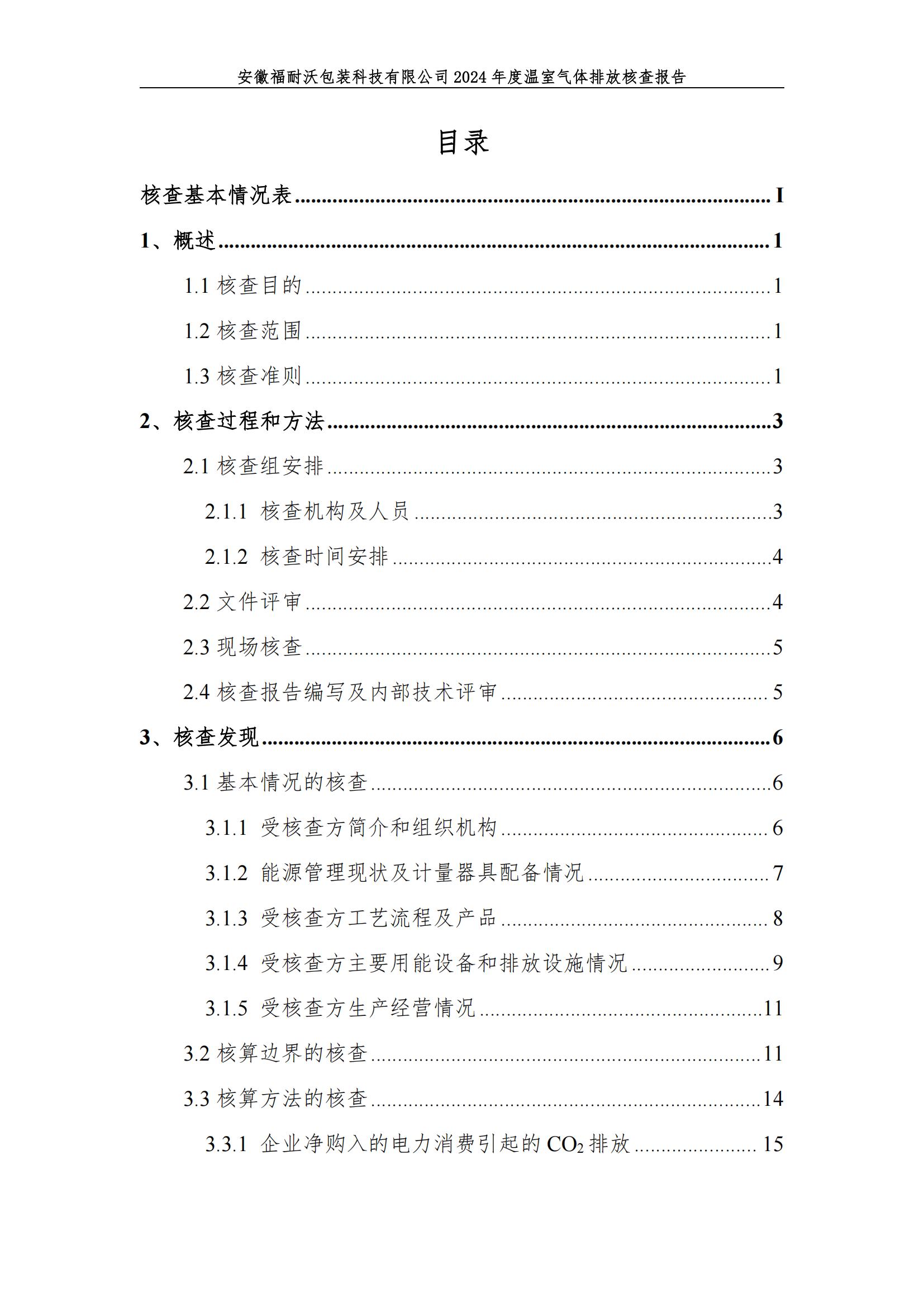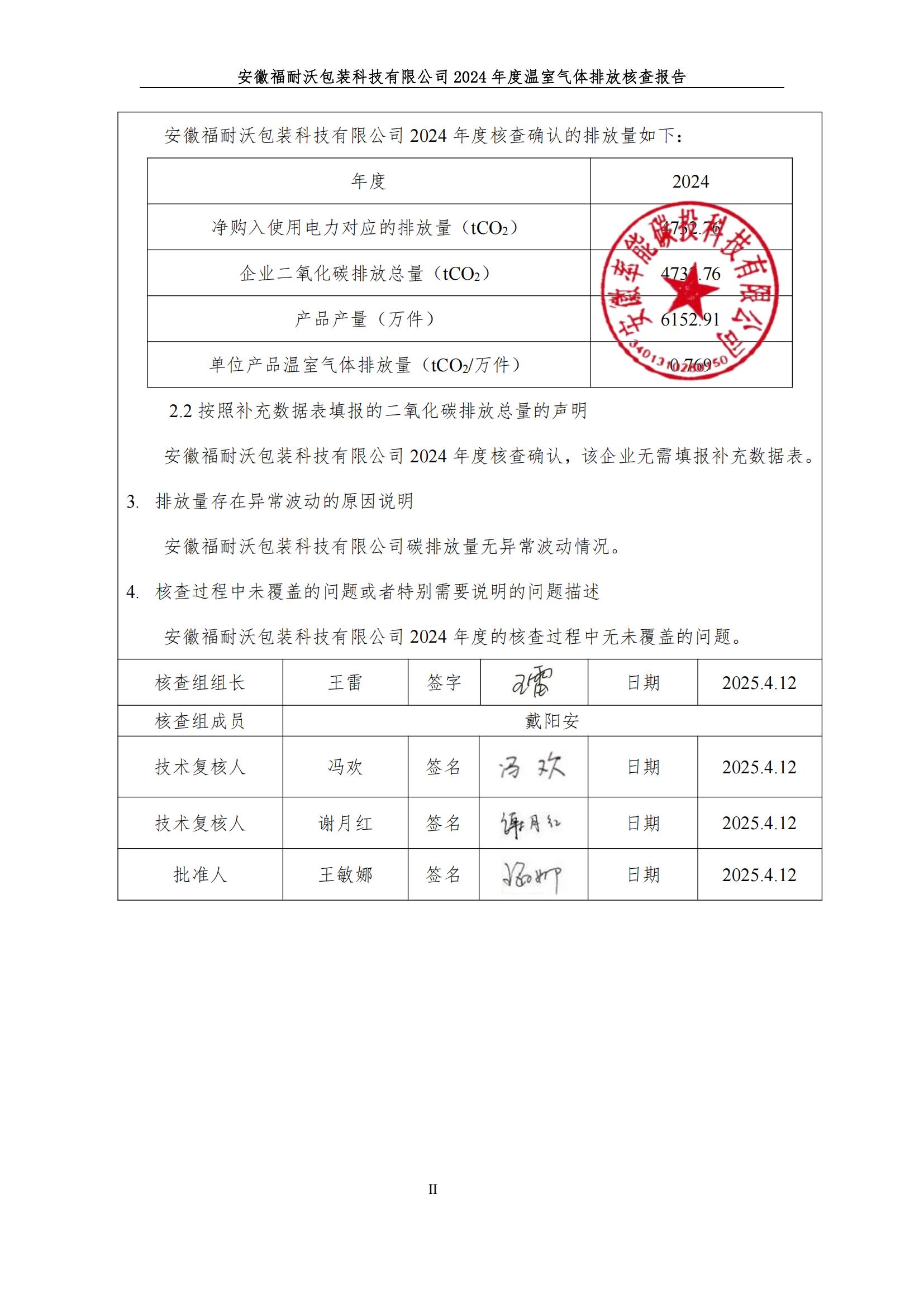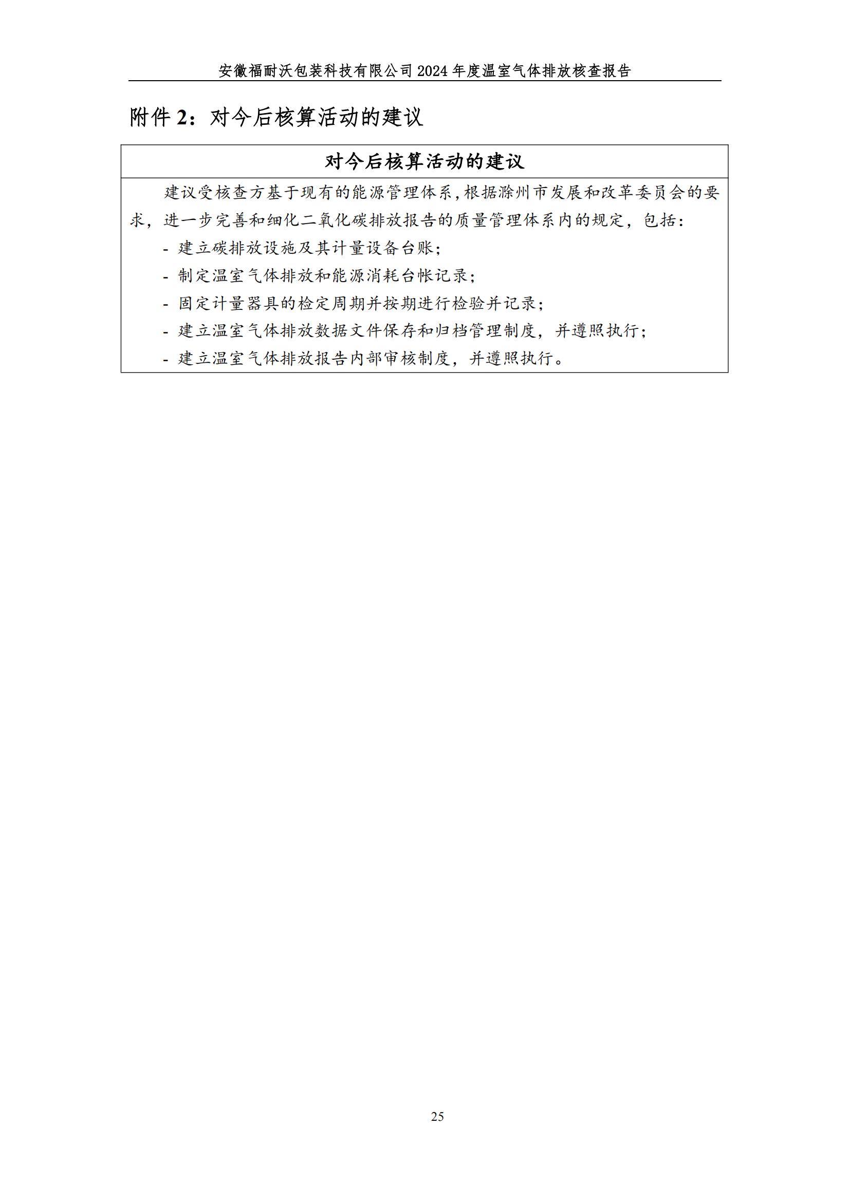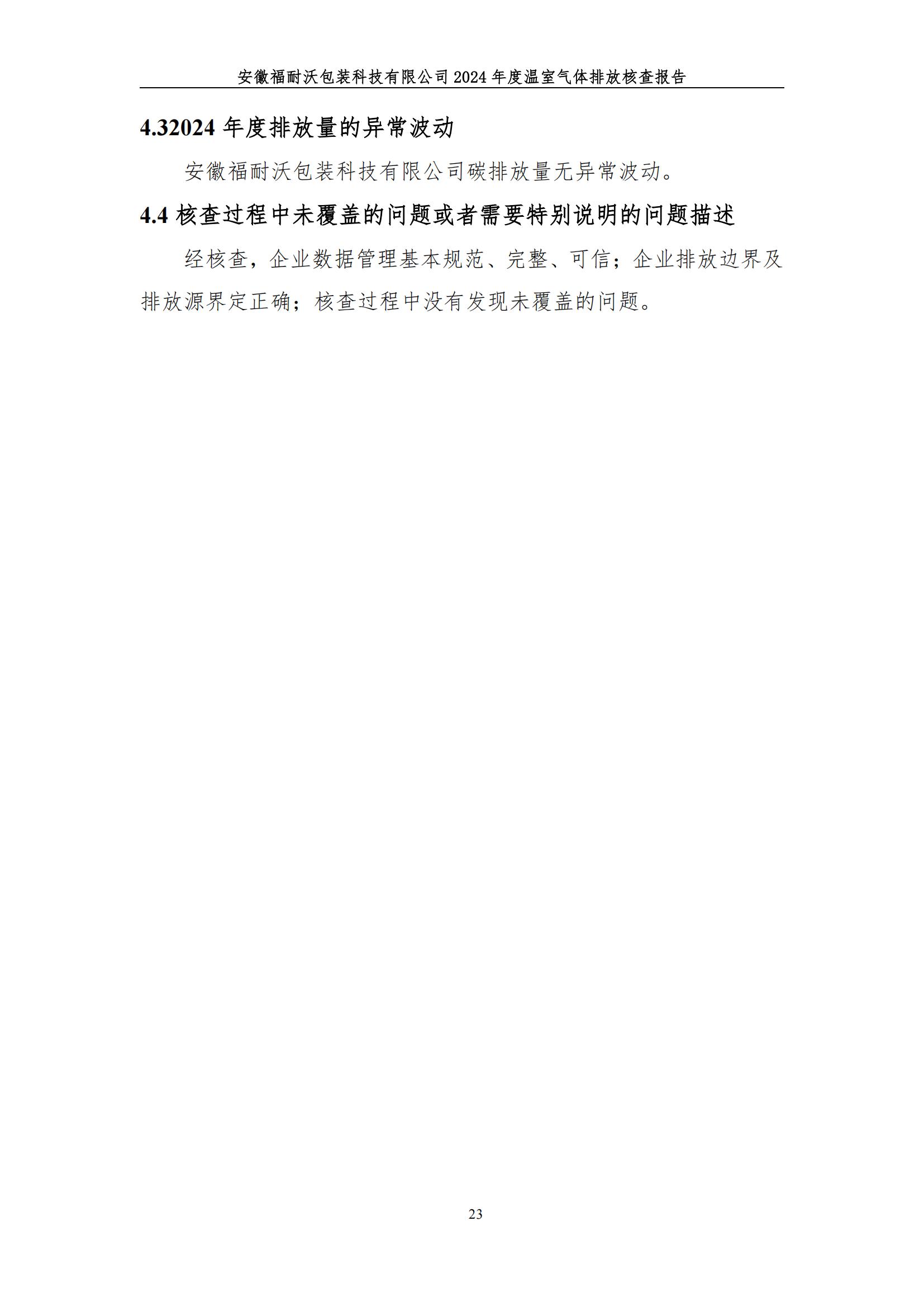 安徽福耐沃包装科技有限公司2024年碳足迹报告