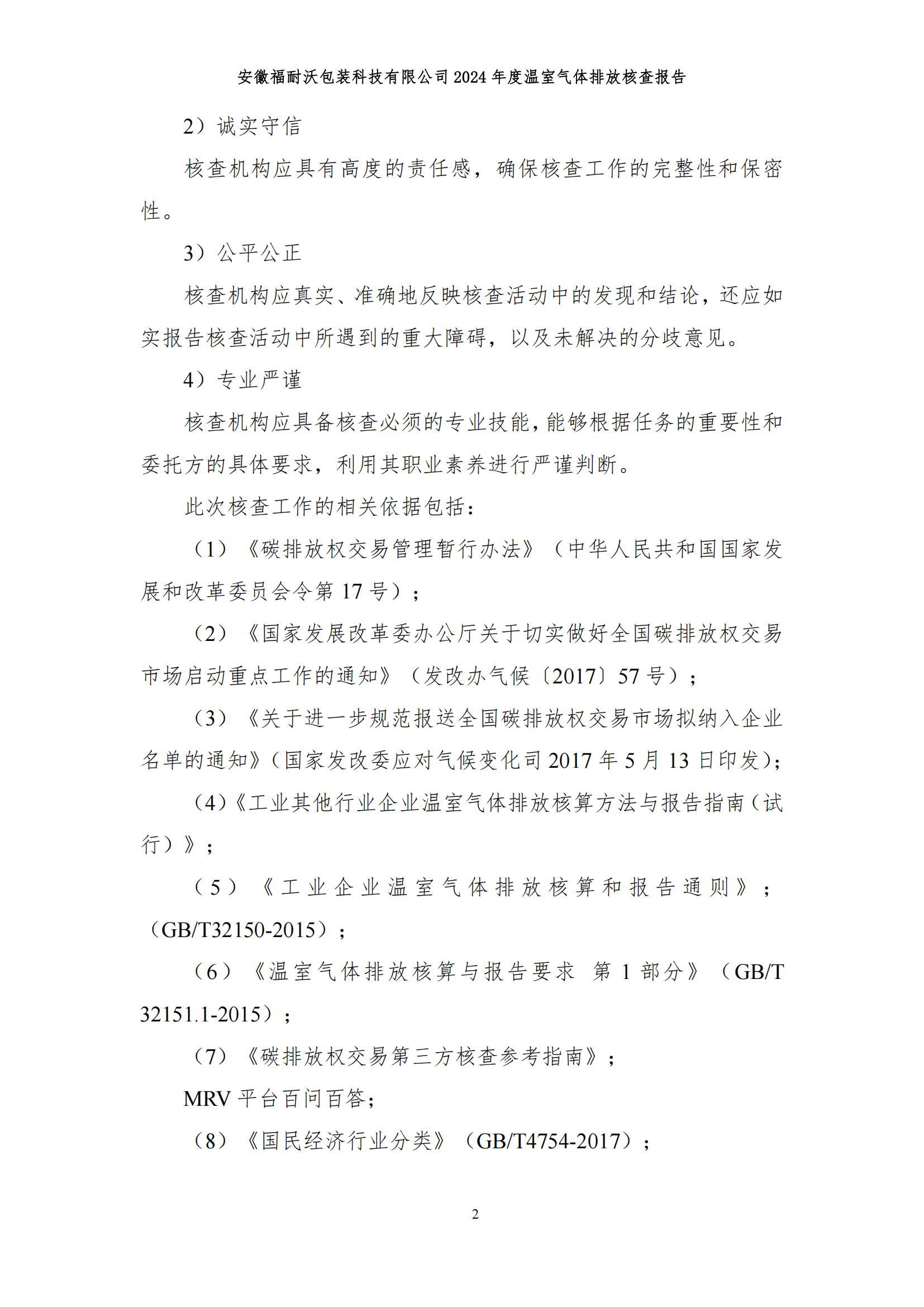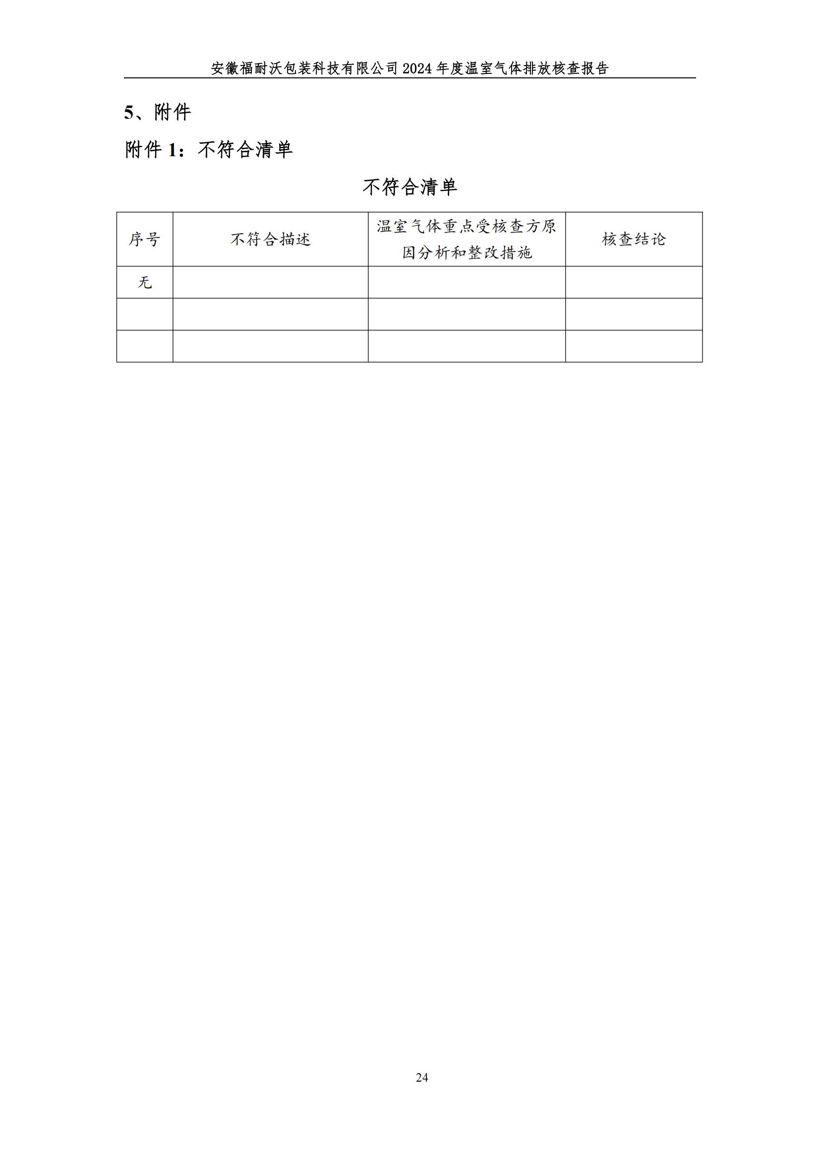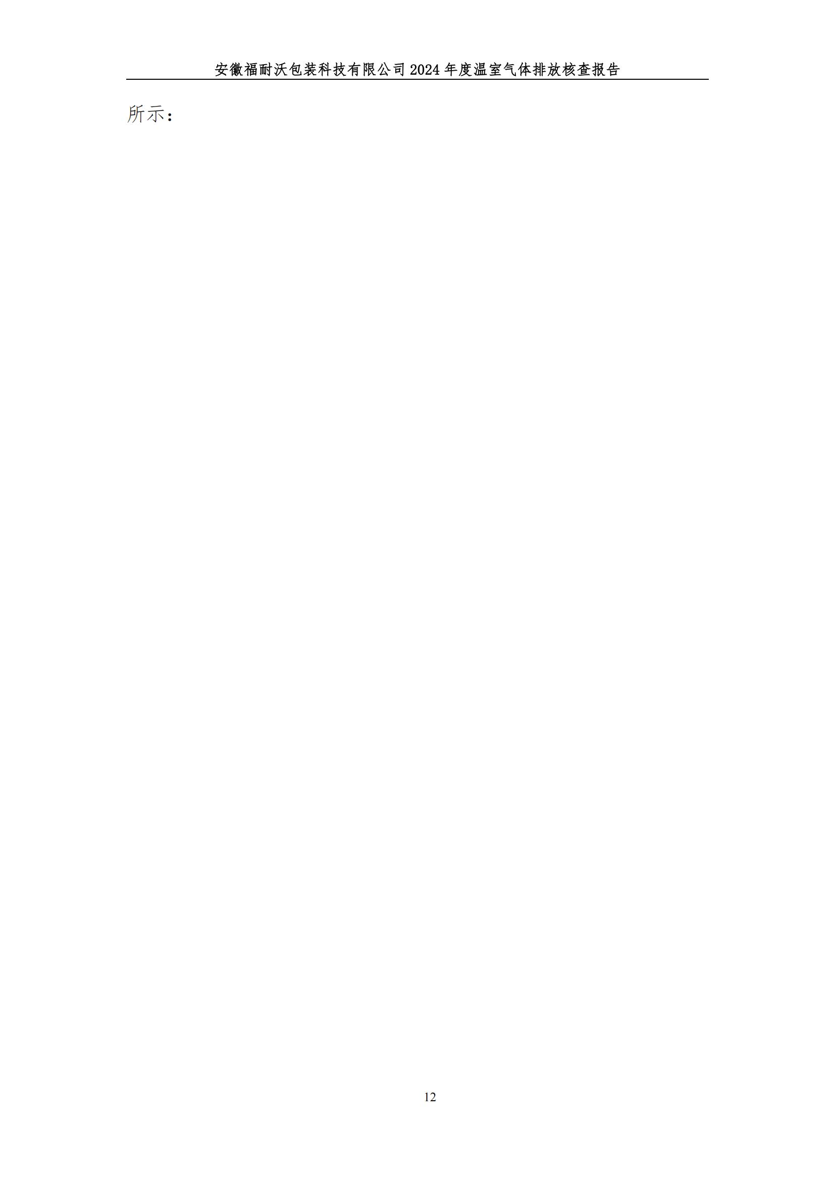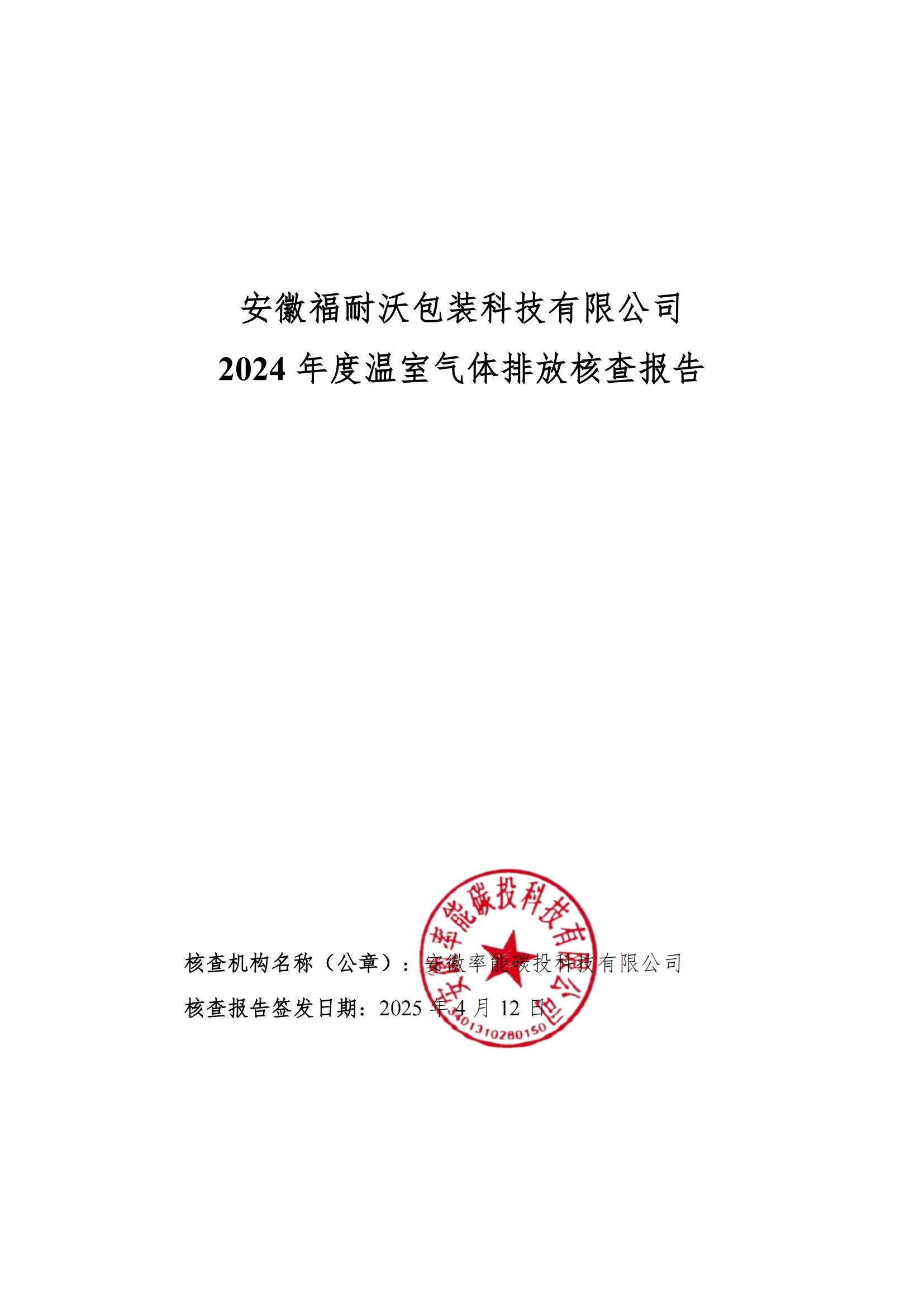 安徽福耐沃包装科技有限公司2024年度温室气体排放报告