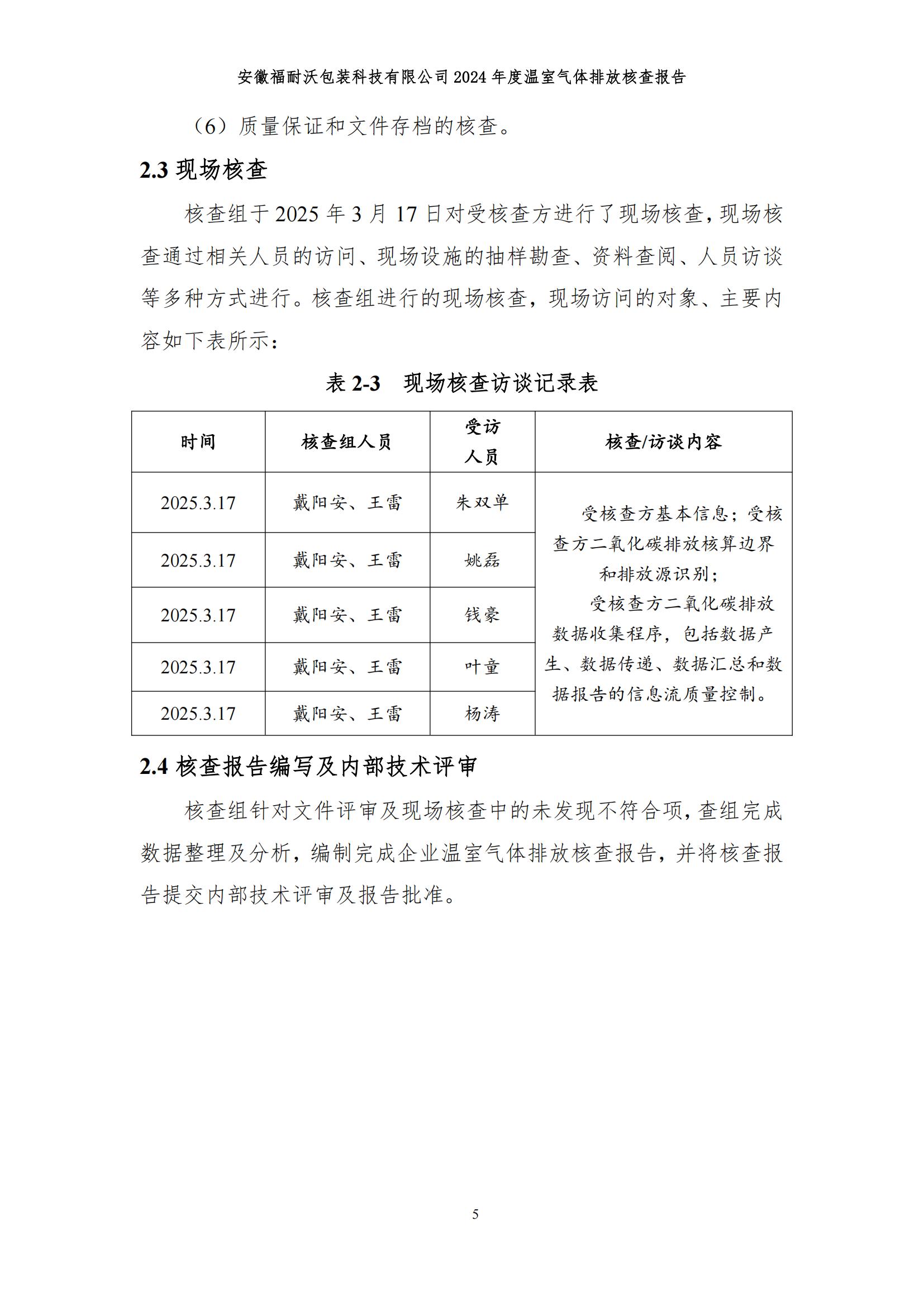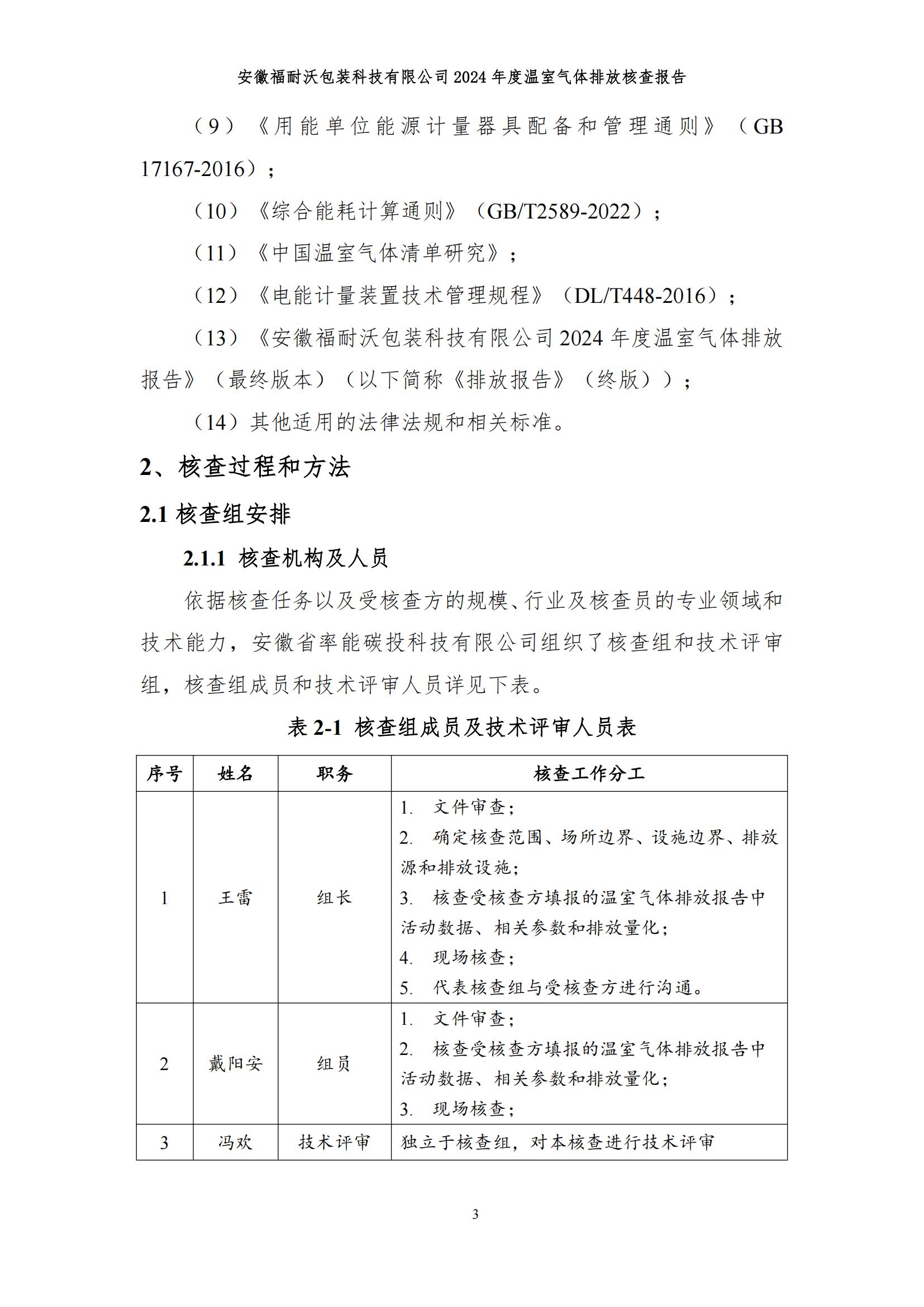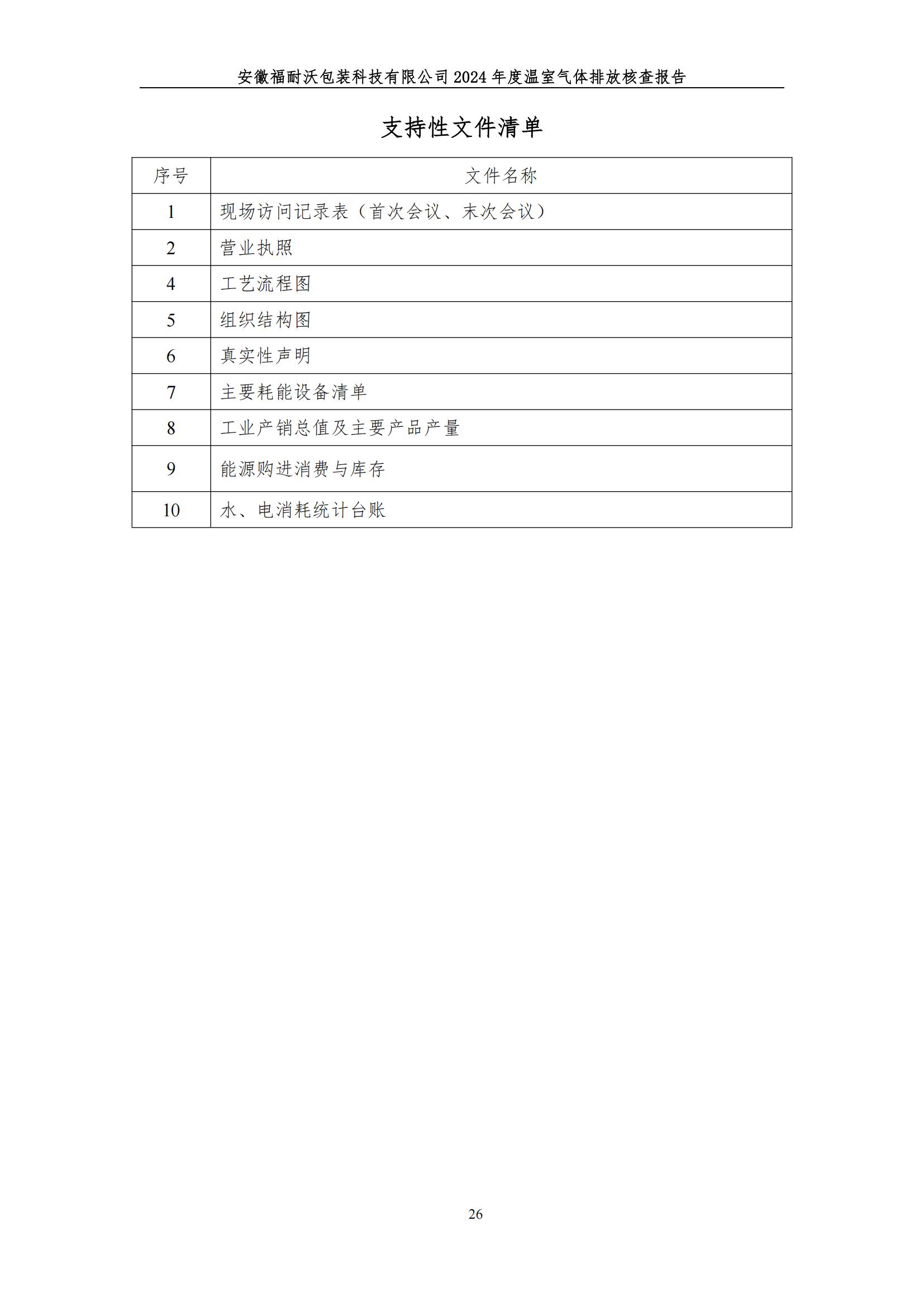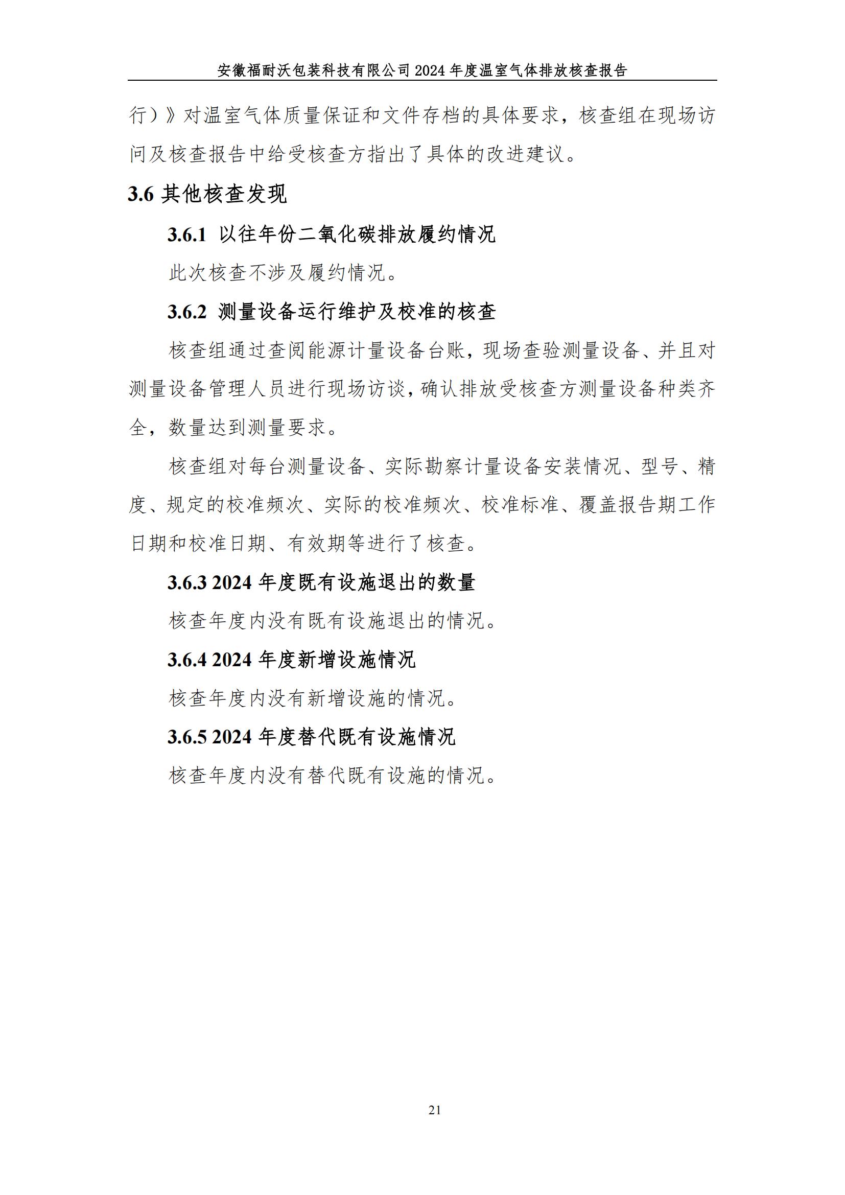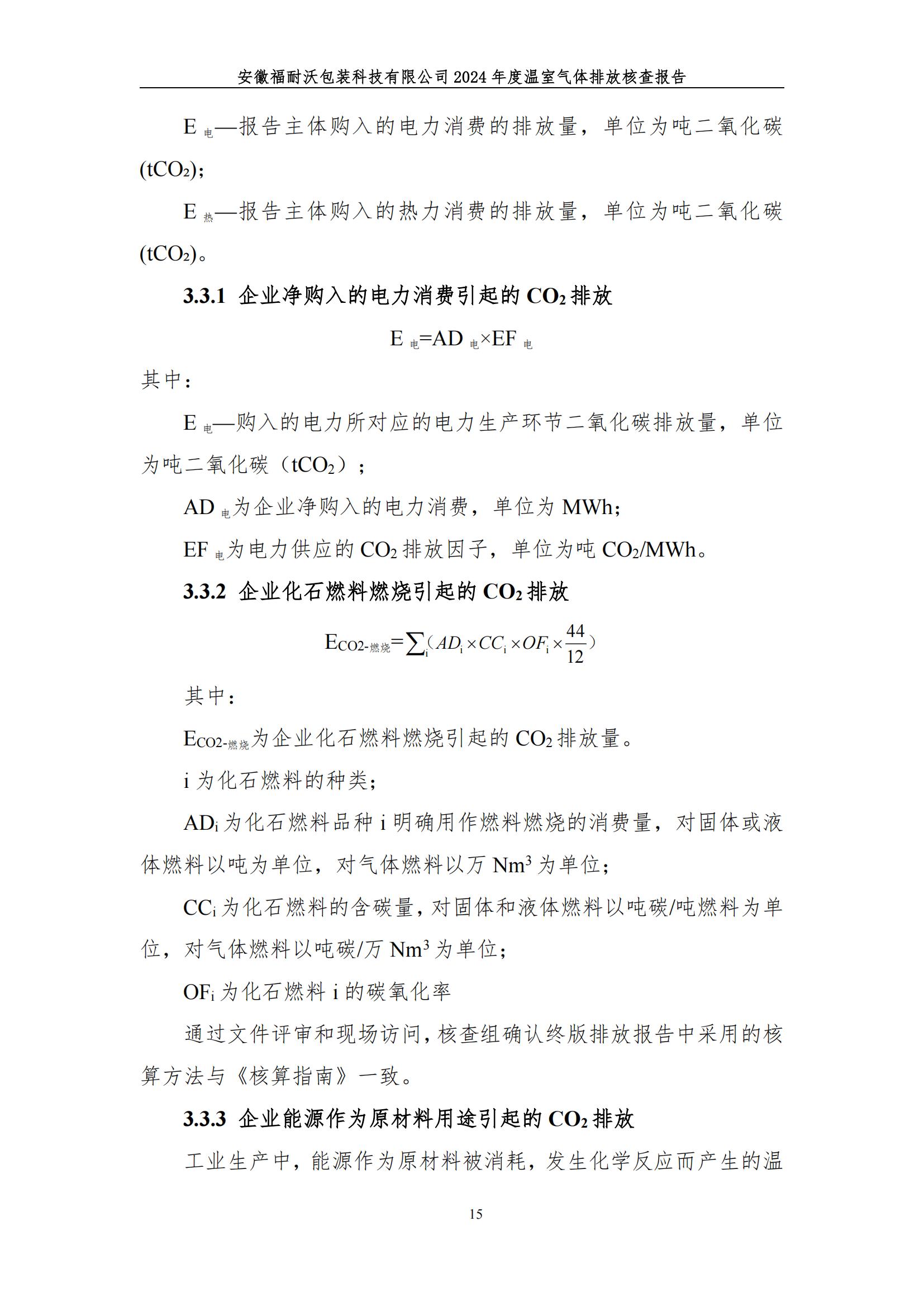 安徽福耐沃包装科技有限公司2024年度温室气体排放报告