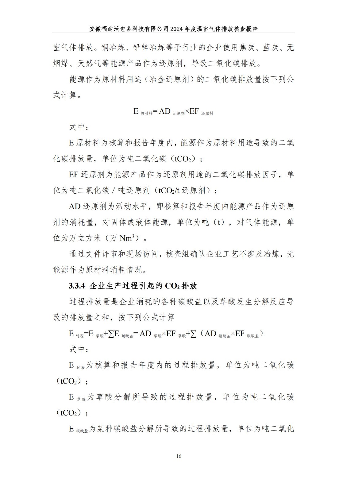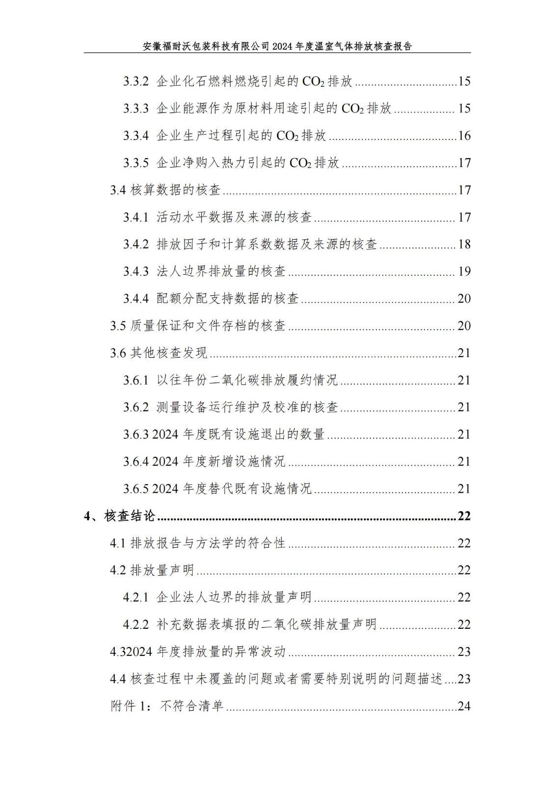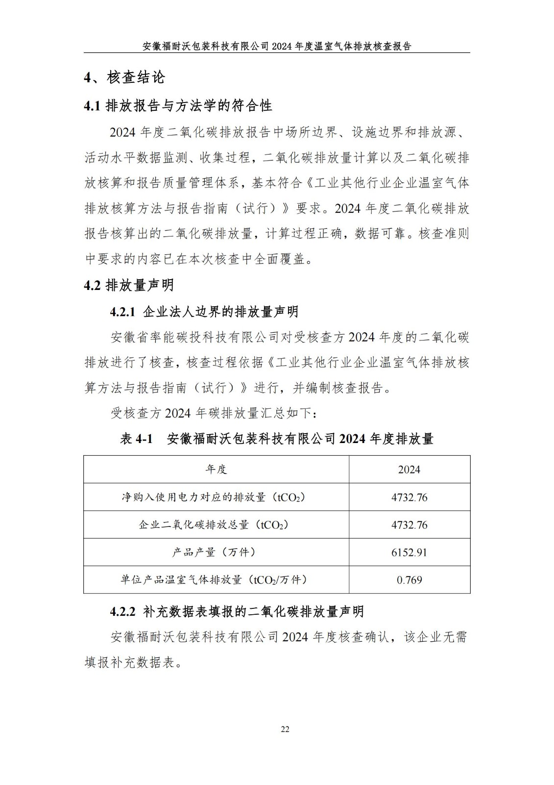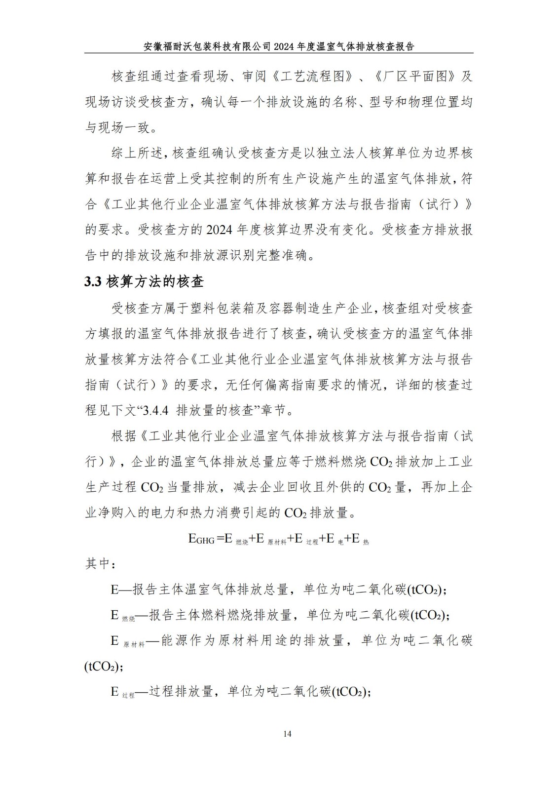 安徽福耐沃包装科技有限公司2024年度温室气体排放报告