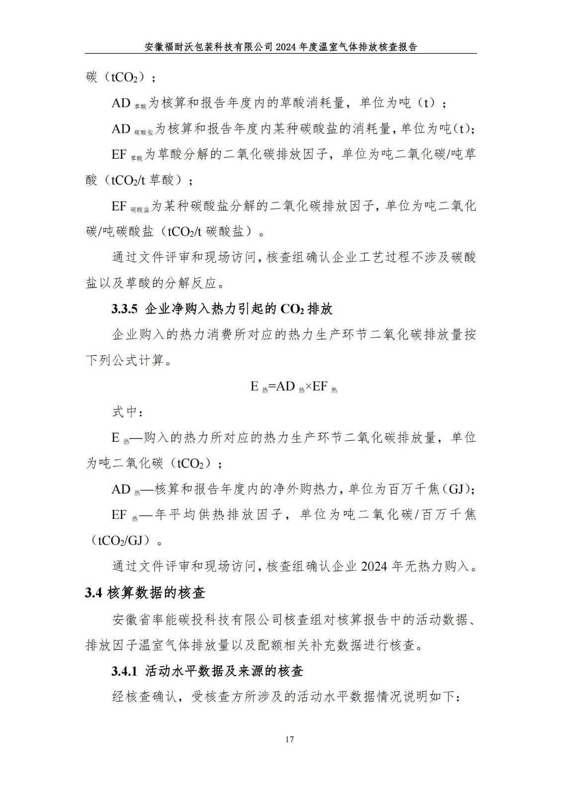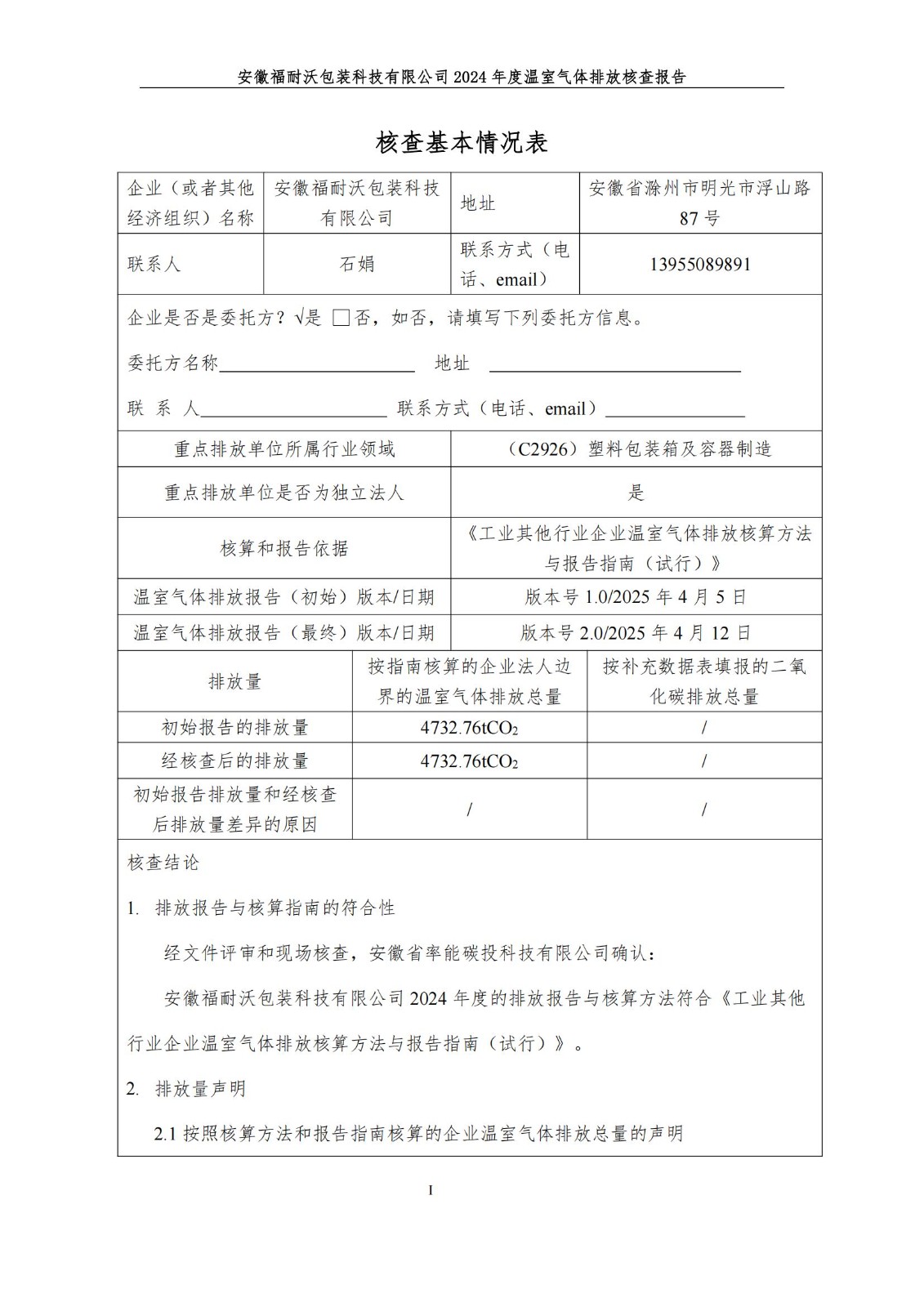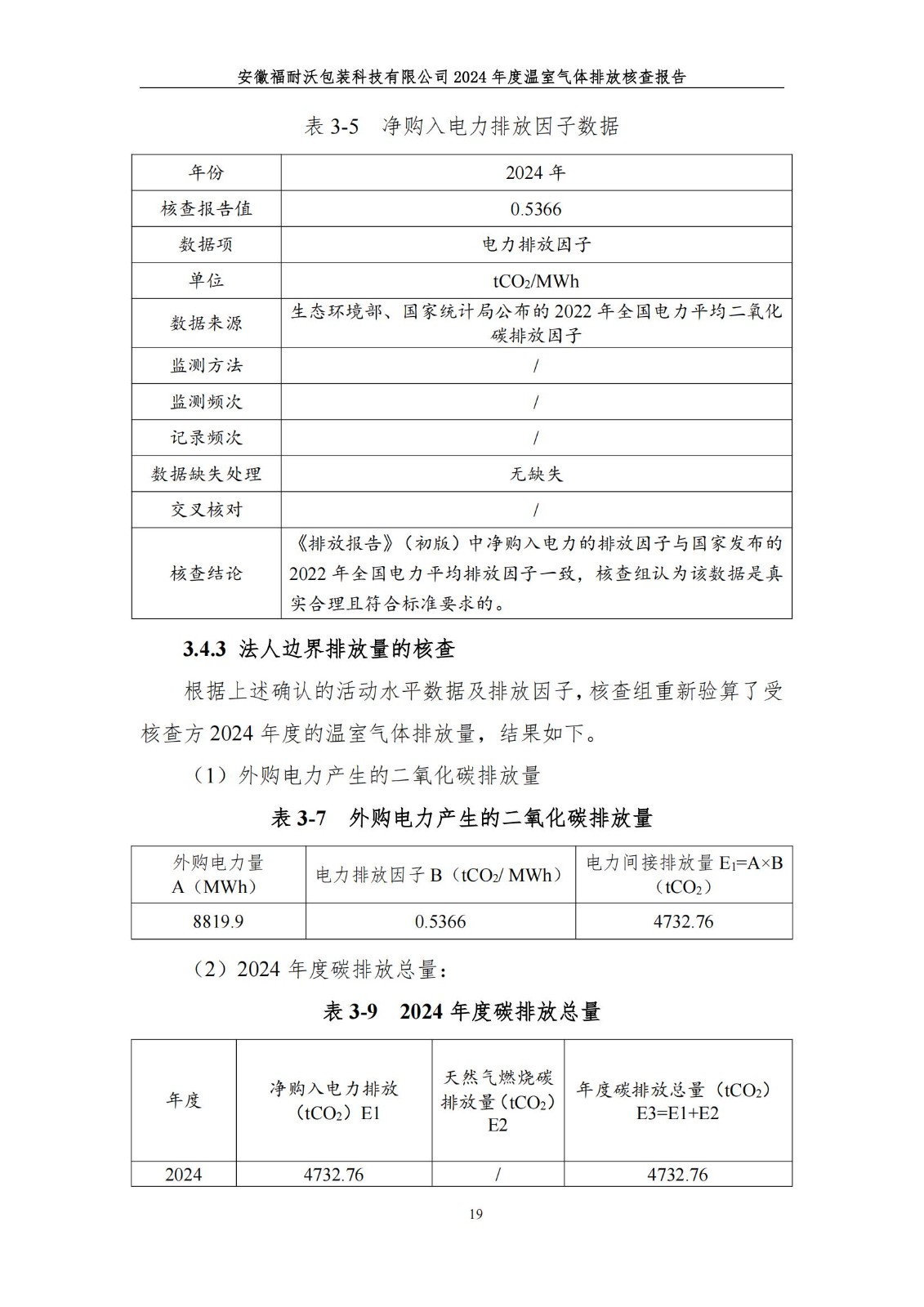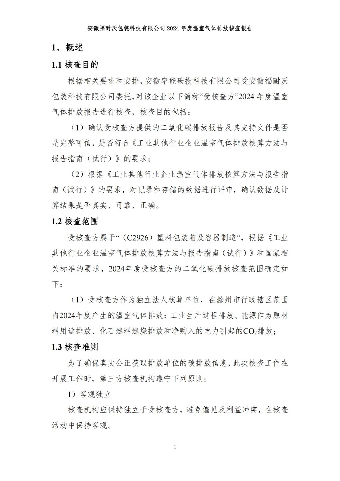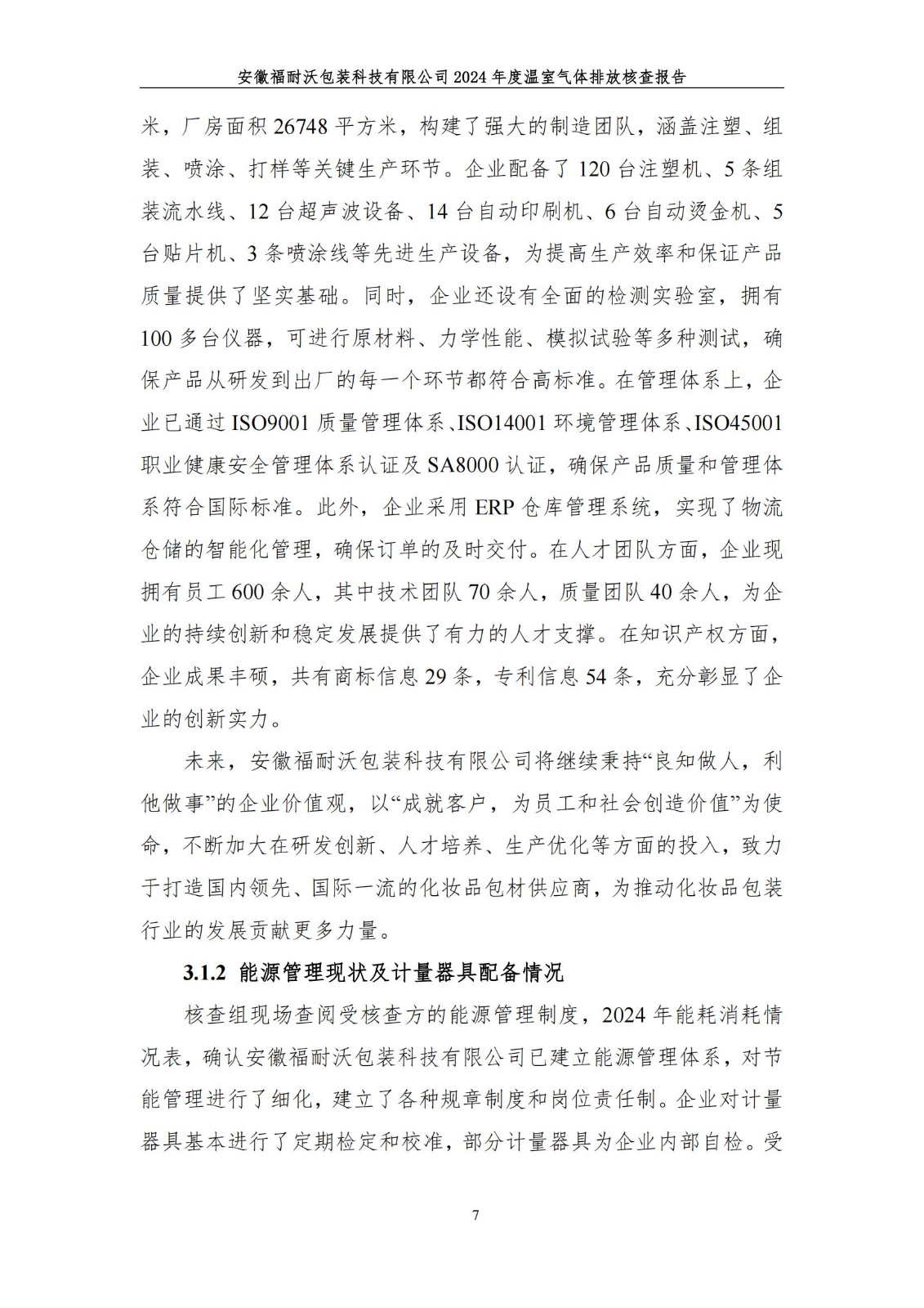 安徽福耐沃包装科技有限公司2024年度温室气体排放报告